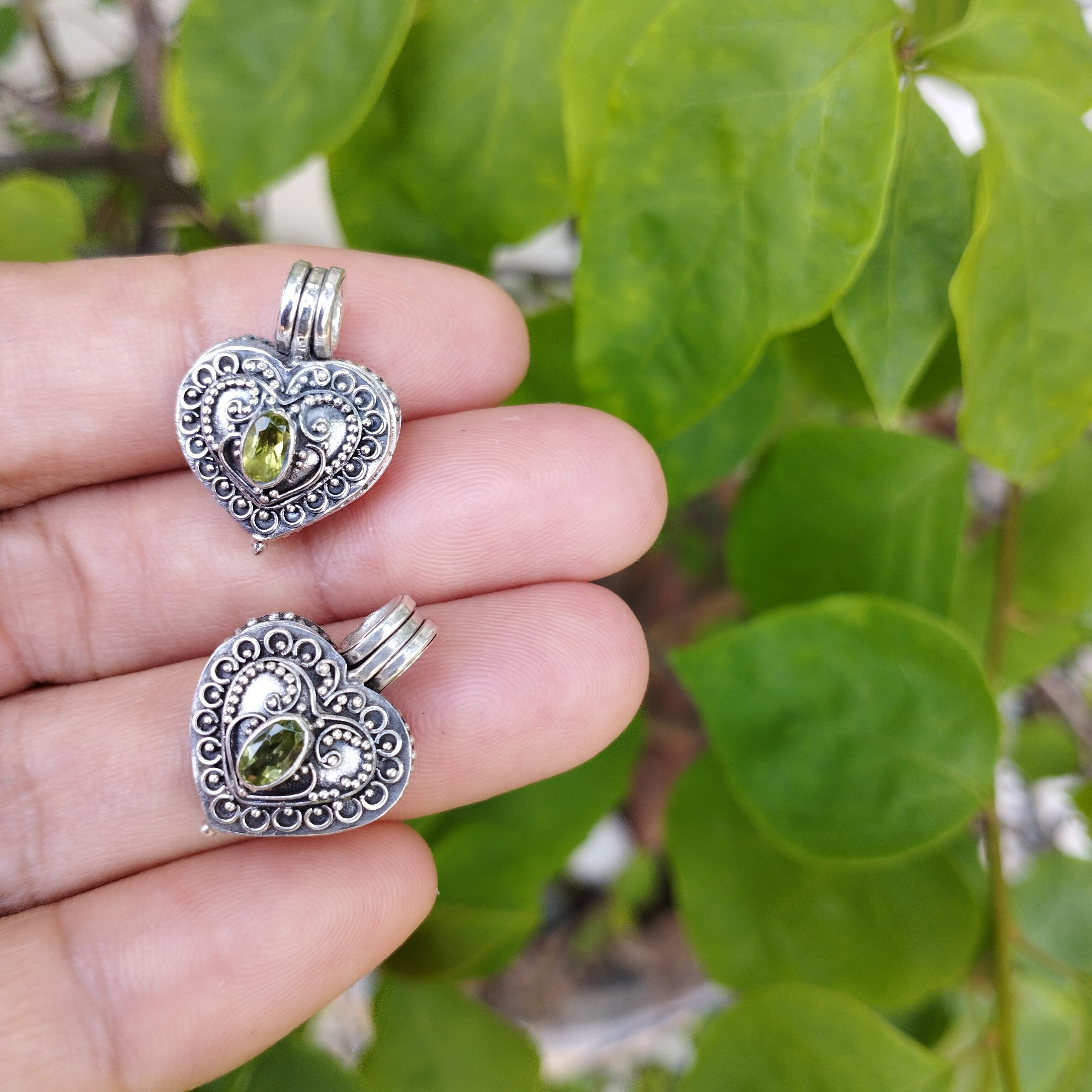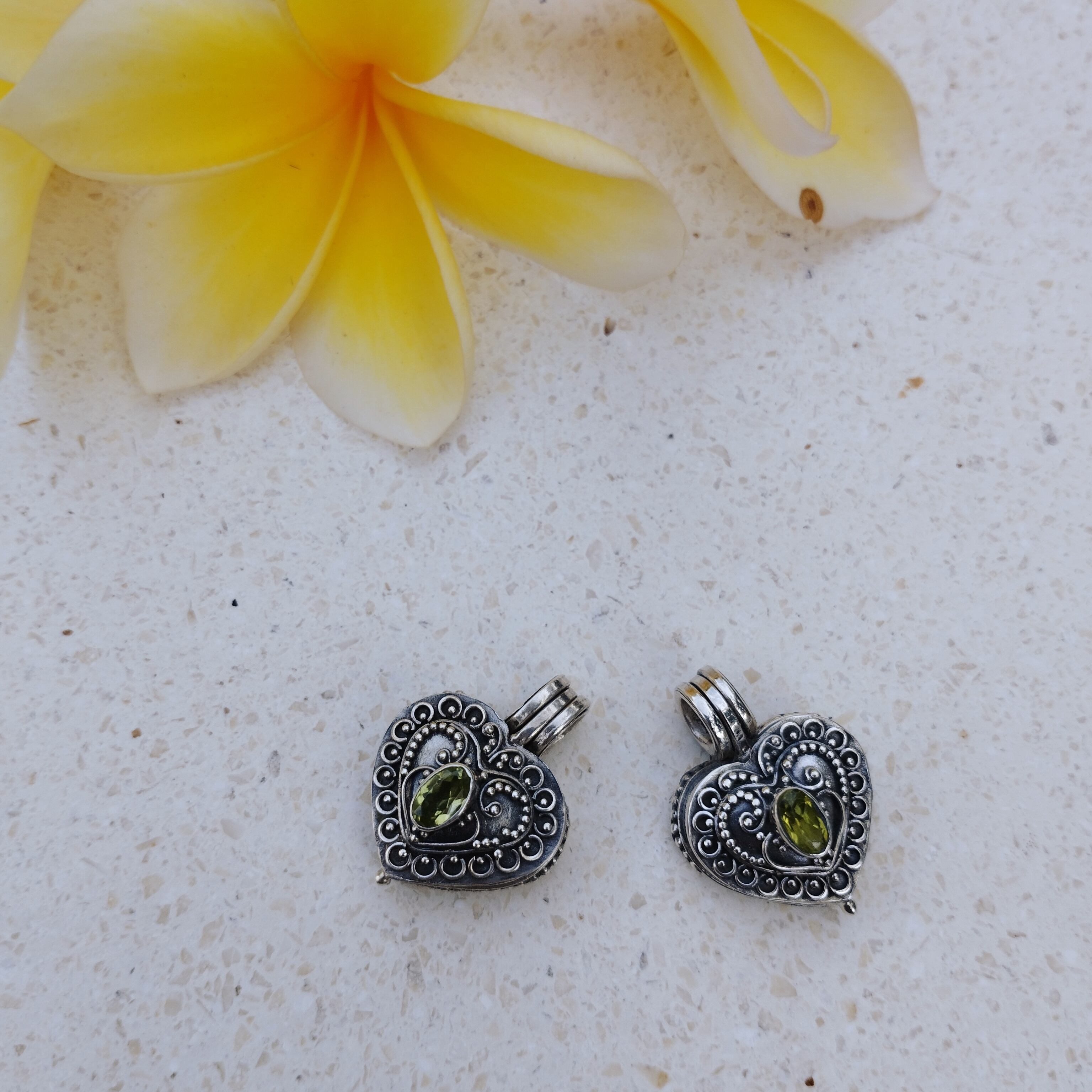 バリ島のシルバー職人さんたちが全ての工程を手作業で仕上げるユニークで繊細なシルバー細工にペリドットがあしらわれたシルバー925の ロケット ペンダント チャーム。