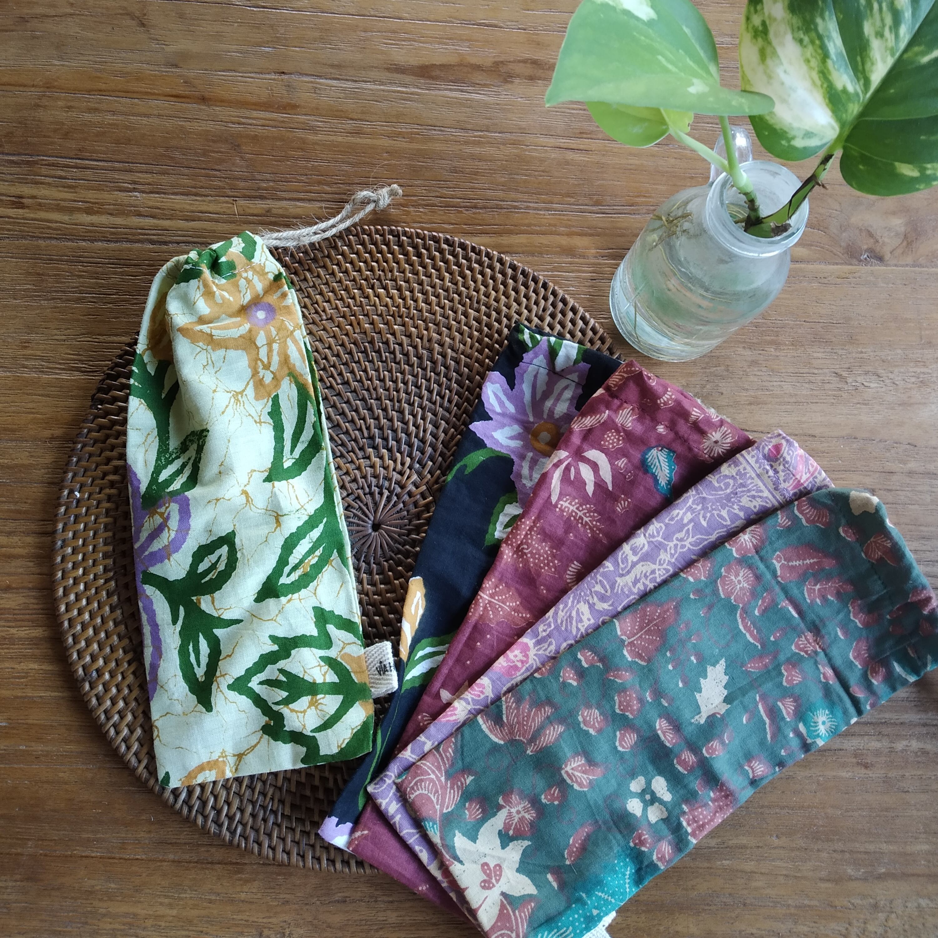 −巾着 コットン&麻紐