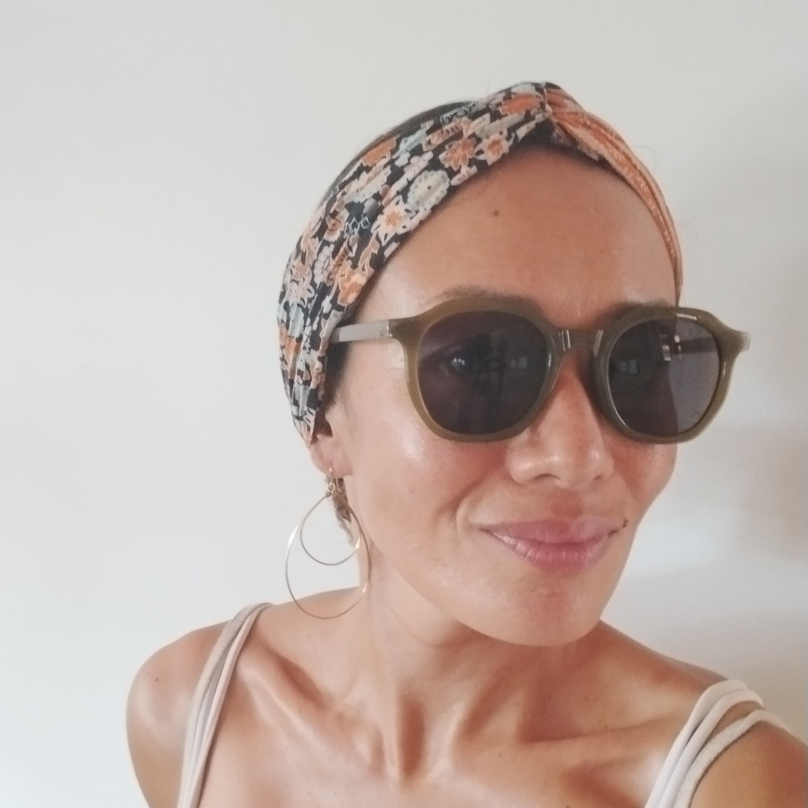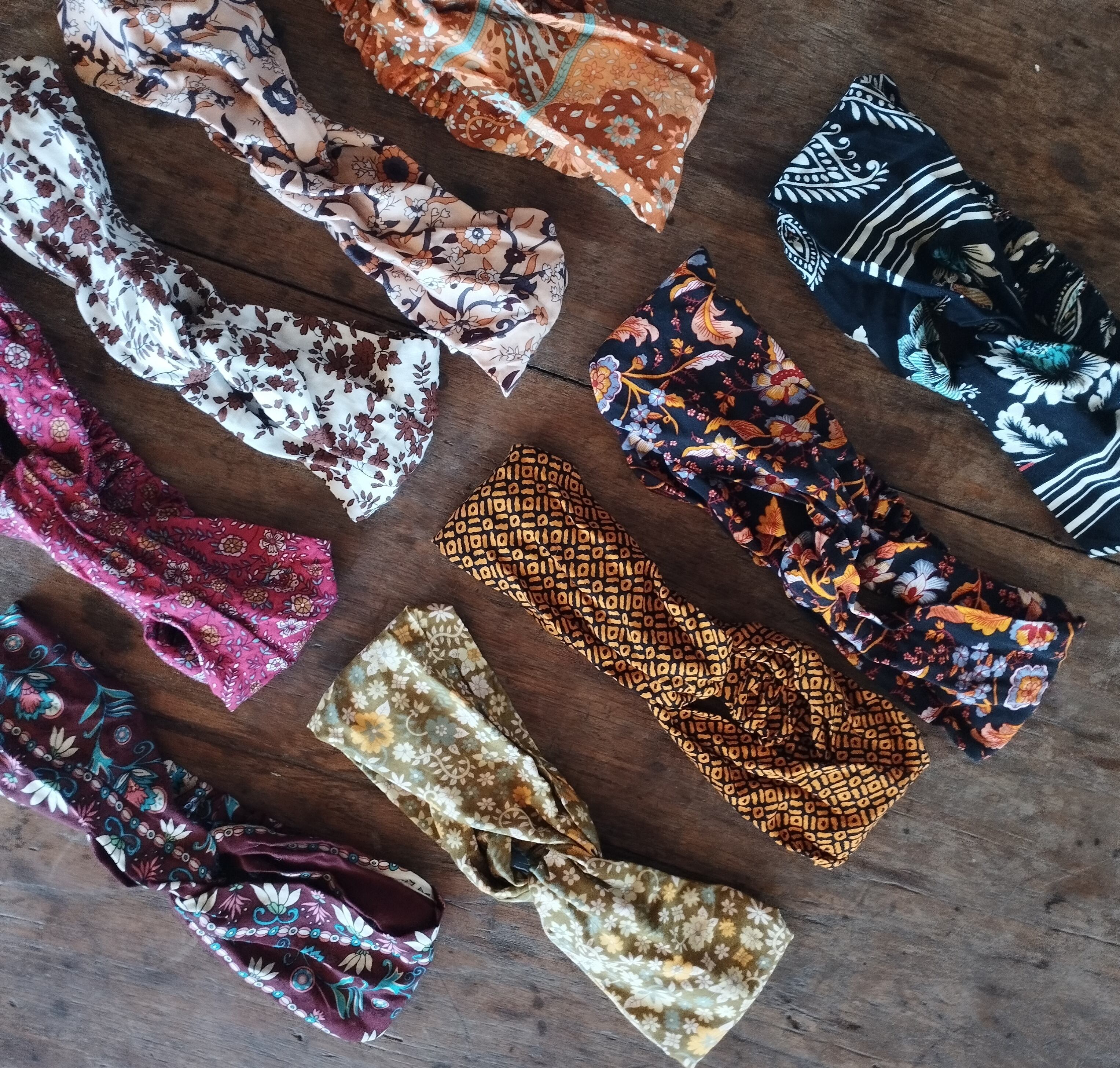 ボヘミアン柄のフロントがクロスしたデザインのターバン。