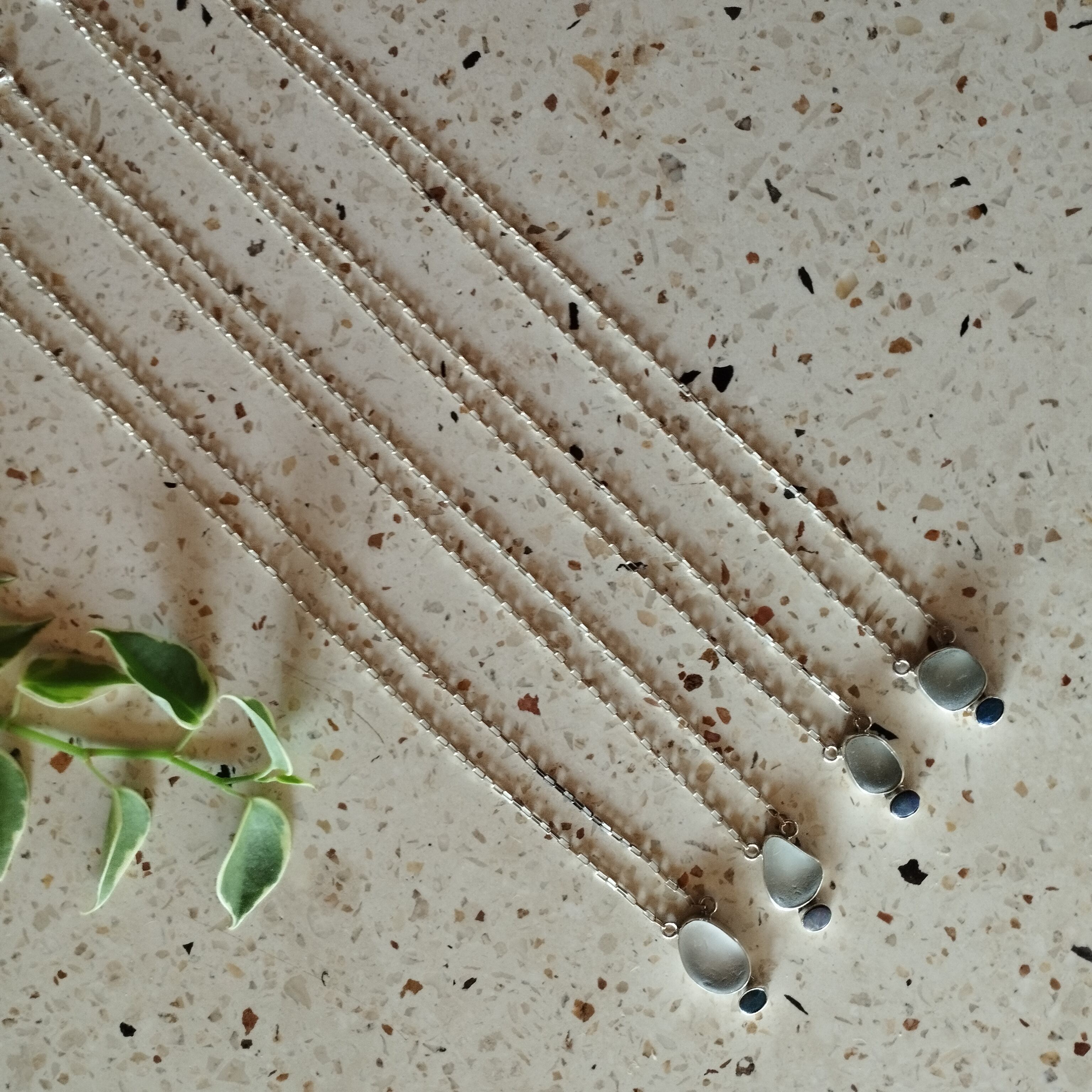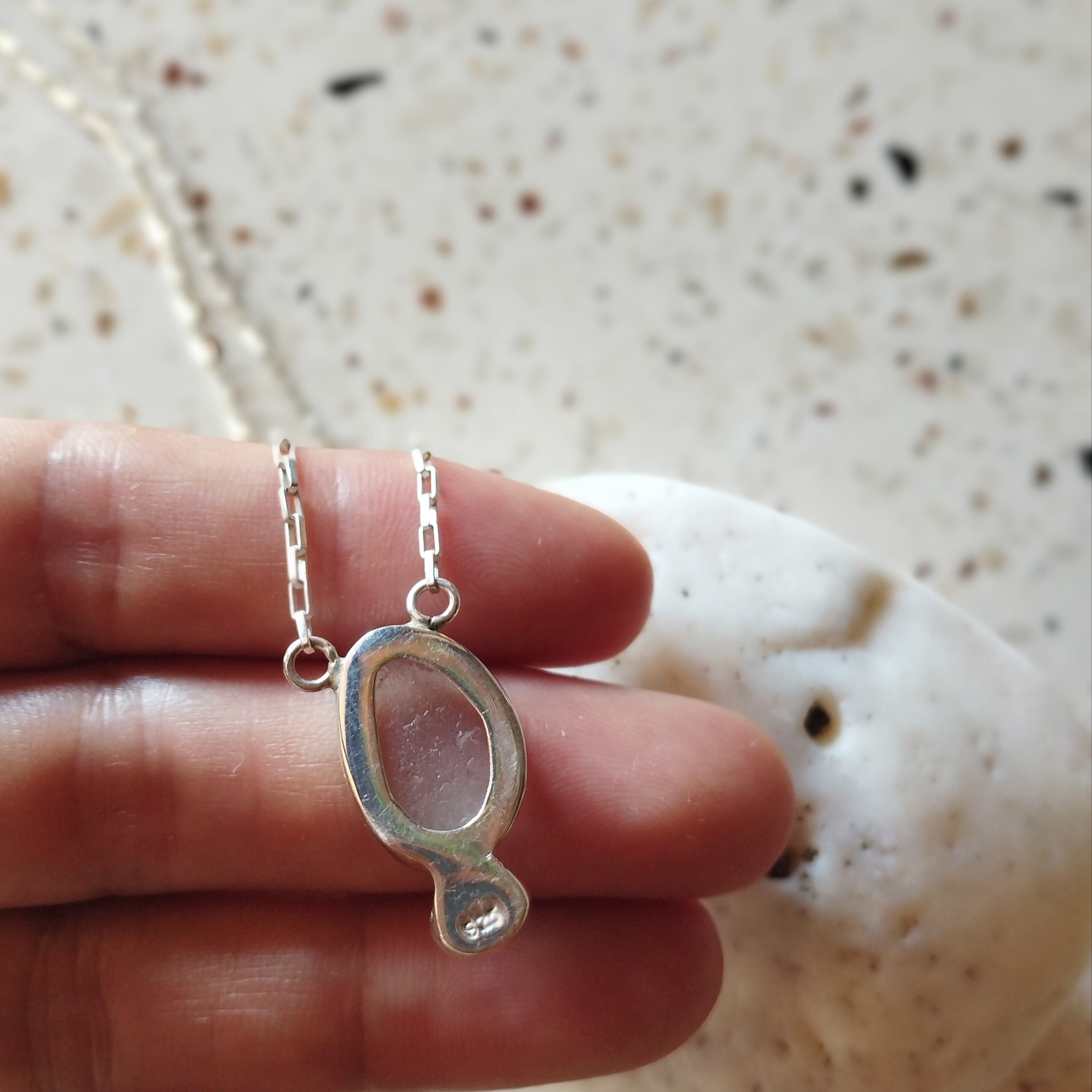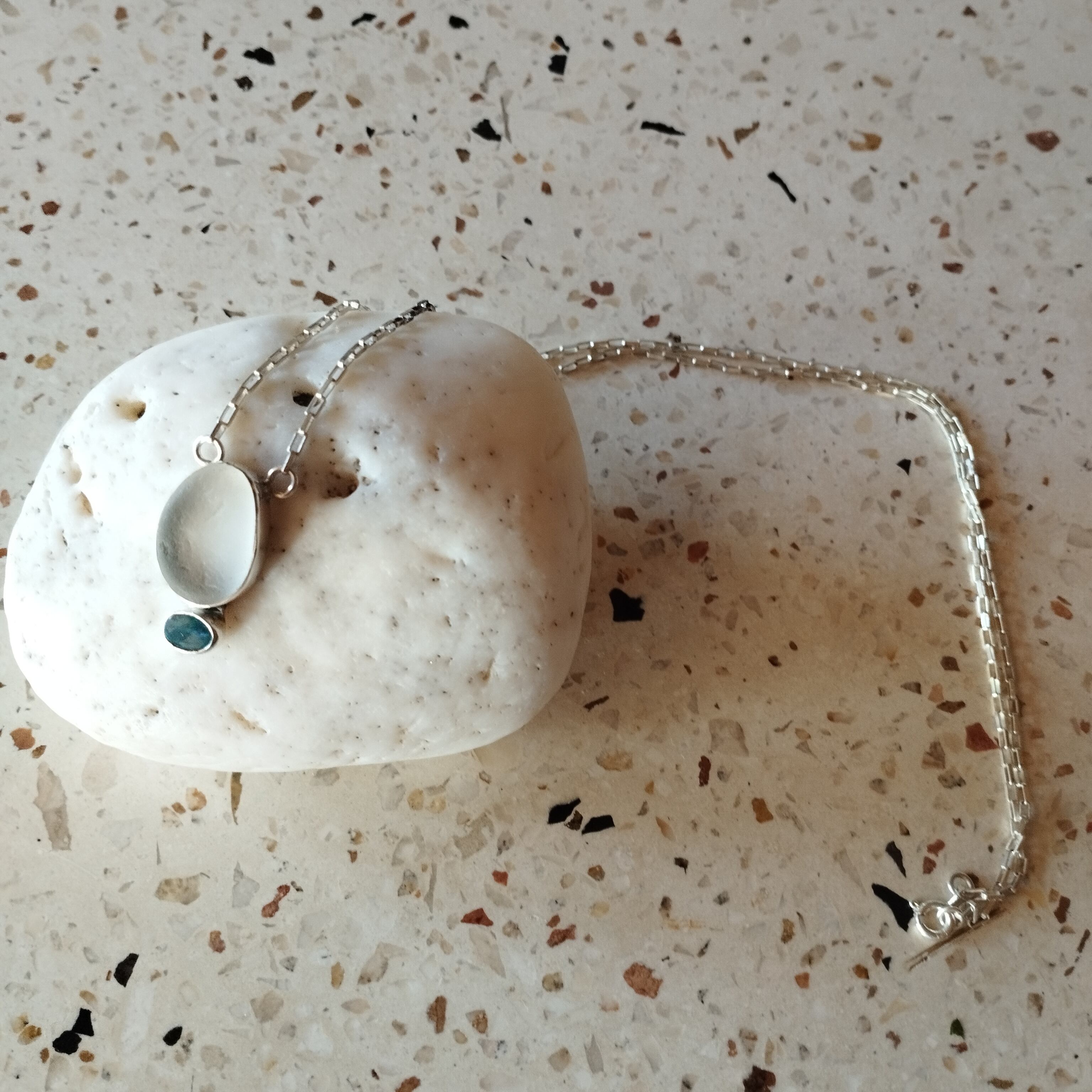 バリ島のビーチで見つけた世界に一つのシーグラスに、オーストラリア産のオパールを合わせてネックレスに仕立てました。